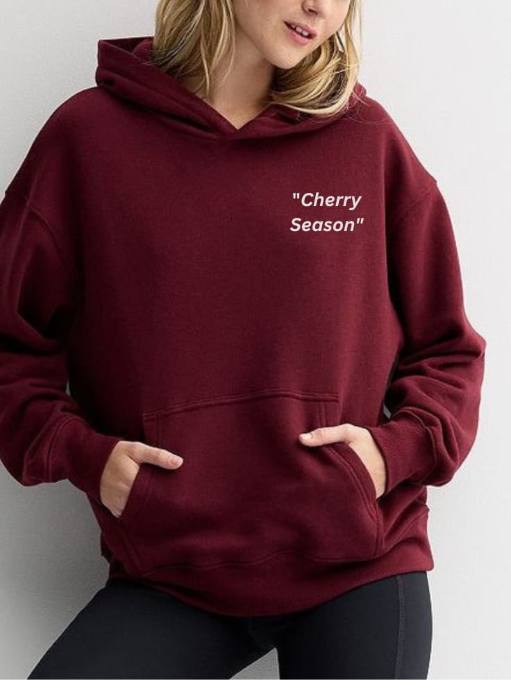 Statement Graphic: “Cherry Dreams” design on the back — an aesthetic blend of minimalism and pop art.
