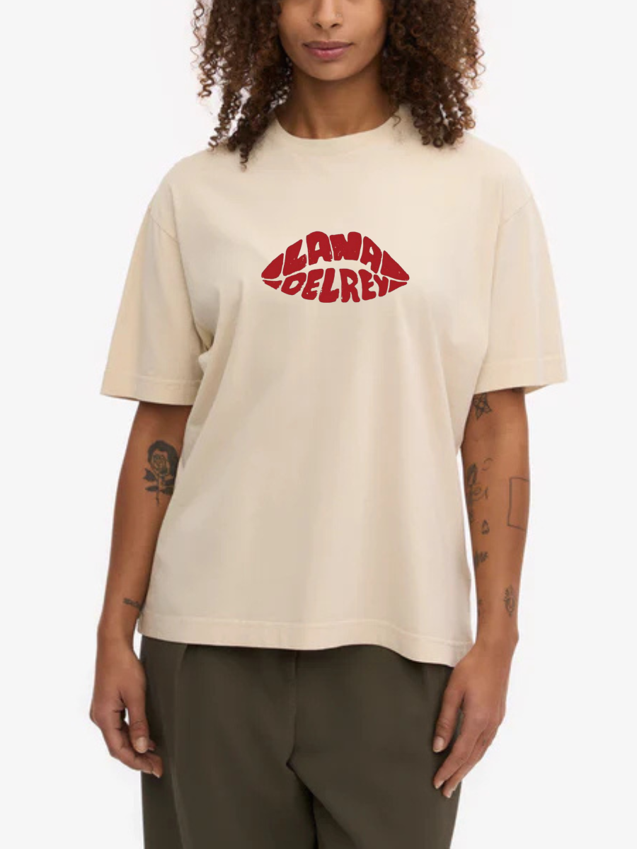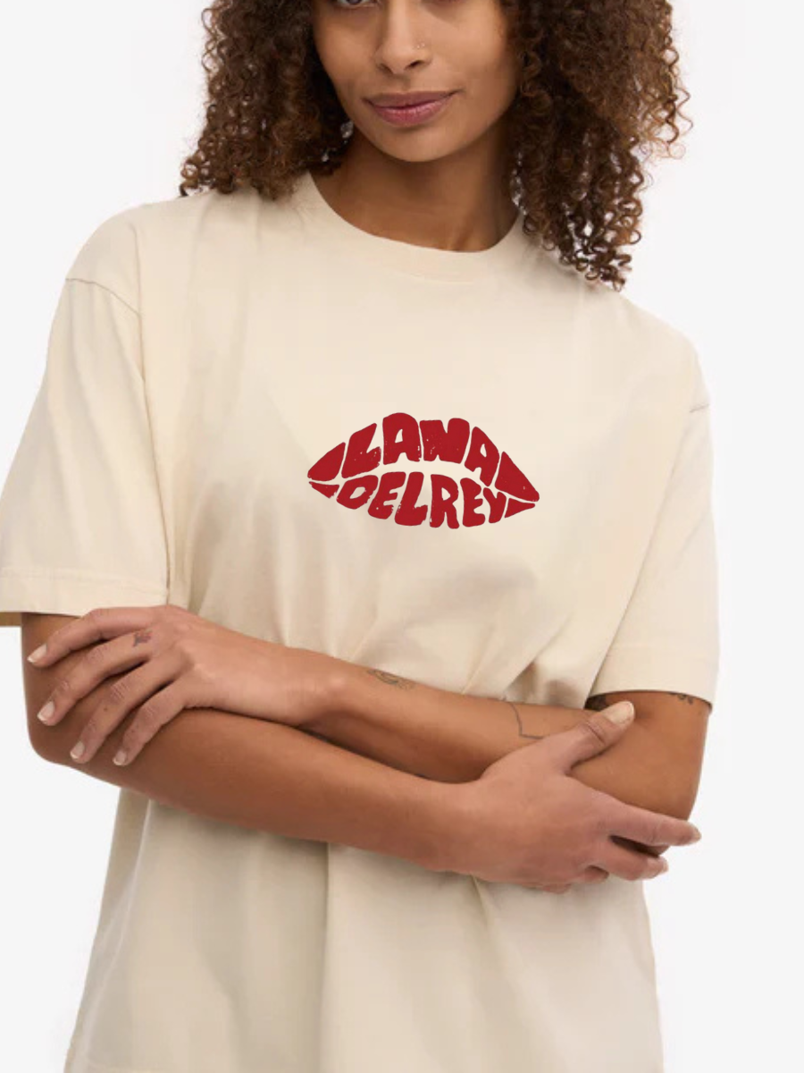 • Design: Back print with red lips collage and “Say Yes to Heaven” typography