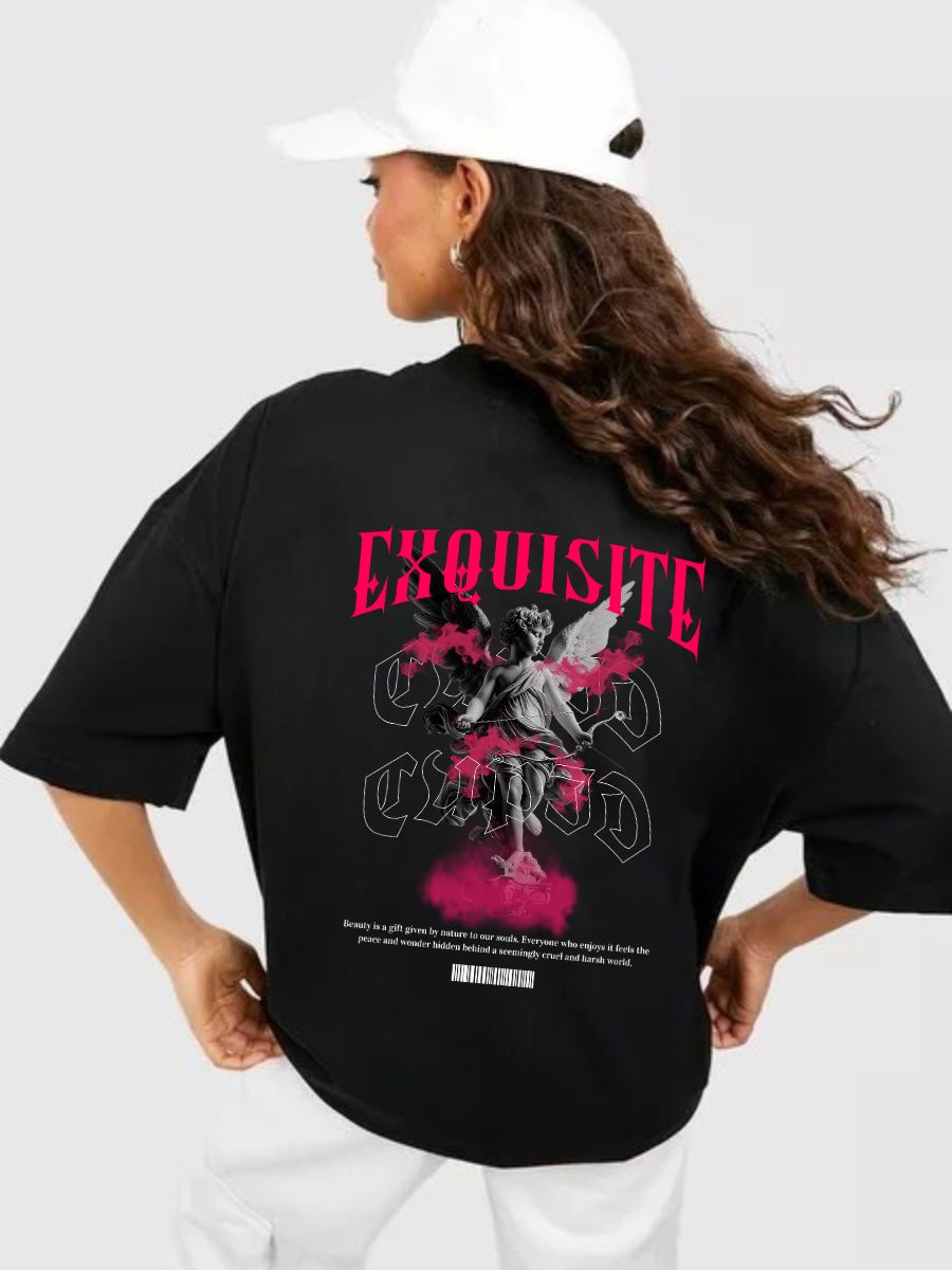 The EXQUISITE Graphics Oversized T-Shirt is made for women who carry elegance with edge. With its relaxed silhouette and premium cotton feel, this tee features a minimalist yet powerful EXQUISITE graphic — a statement of confidence, self-worth, and elevated everyday style.
