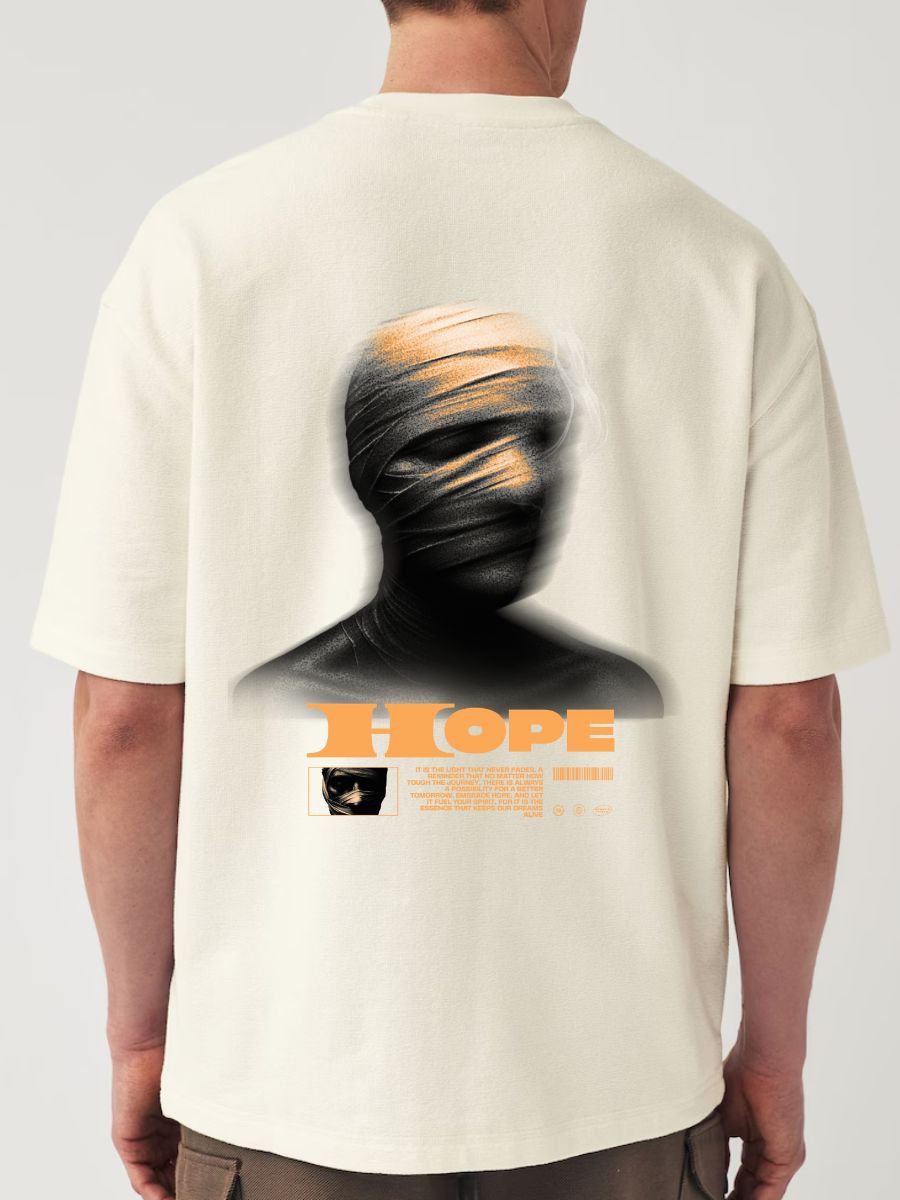 Designed for effortless street style, this tee features a relaxed, drop-shoulder fit and premium cotton fabric that feels as good as it looks. The standout HOPE graphic on the back adds a touch of meaning, reminding you to keep your head up—no matter what.